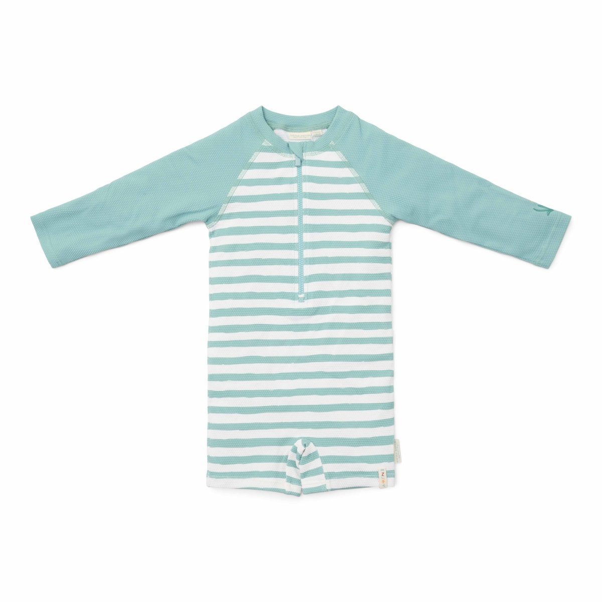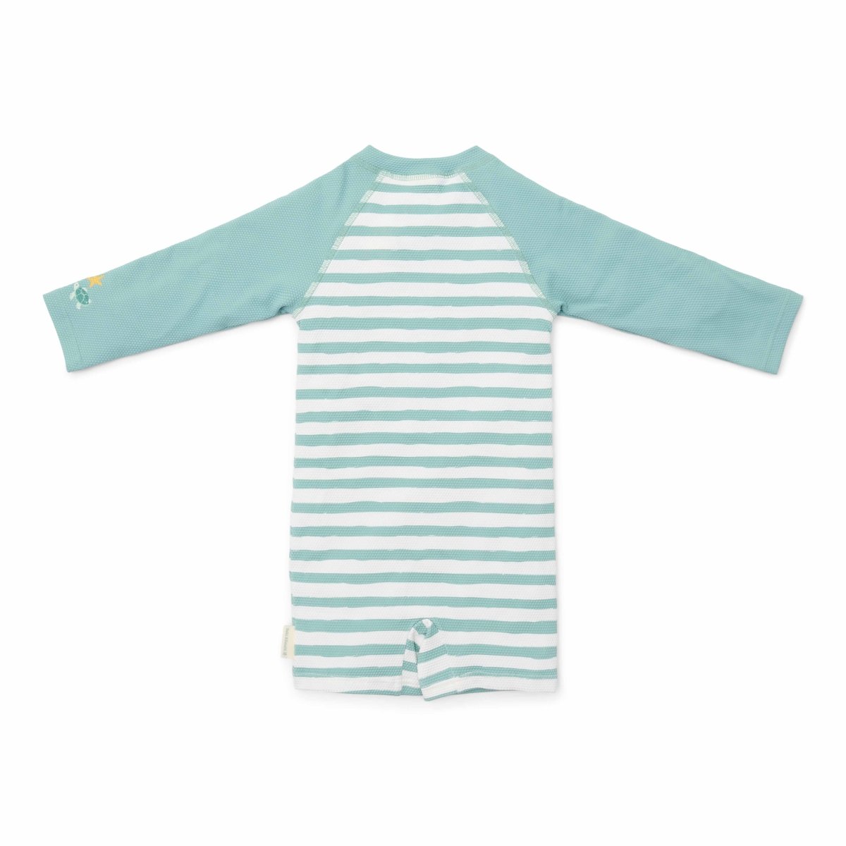 Springe ins Wasser und mach dich bereit, die Wunder des Meeres zu entdecken. In diesem bezaubernden Badeanzug wird dein Kleines der Star am Strand sein. Die verspielte Kombination aus ozeangrünen Streifen und unifarbenen langen Ärmeln, die mit zarten Seesternen verziert sind, wird dein Kleines auf die fantastischsten Abenteuer am Meer mitnehmen.