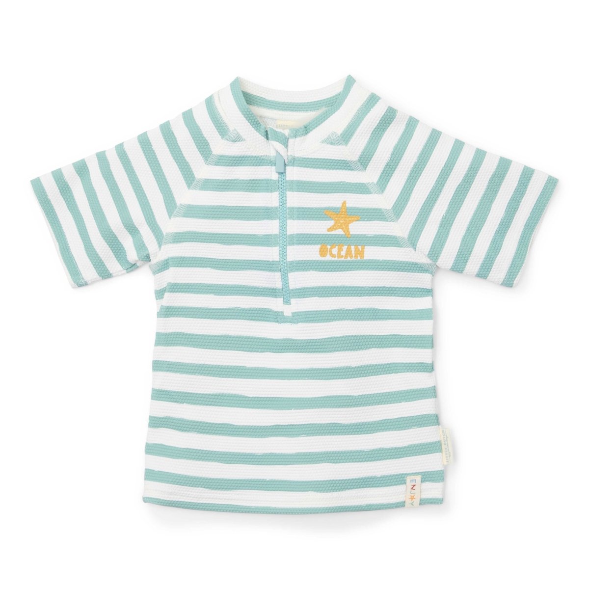 Das kurzärmelige Badeshirt wurde sorgfältig verarbeitet und bietet eine perfekte Mischung aus Stil, Funktionalität und Komfort. Dank des Reißverschlusses lässt sich das Shirt leicht an- und ausziehen, selbst wenn es nass ist. Der fröhliche gelbe Seestern auf der Vorderseite verleiht dem fröhlich gestreiften Shirt einen verspielten und sommerlichen Charme. Erhältlich in den Größen 62/68, 74/80, 86/92 und 98/104.