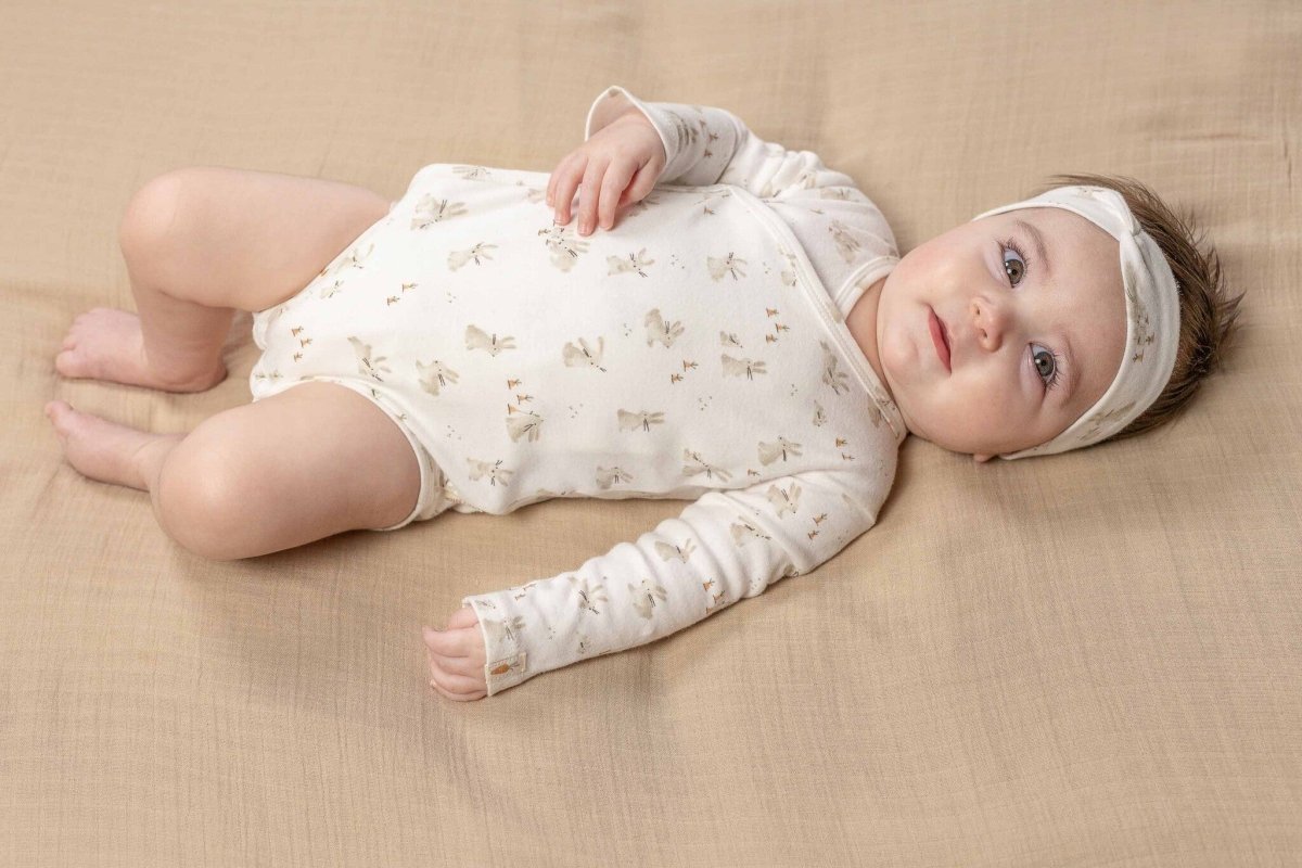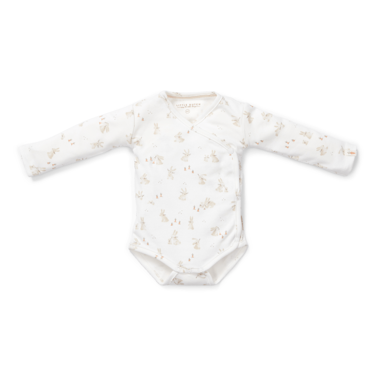Dein allererster Sommer! Mit diesem süßen Bodysuit ist dein Baby bestens ausgestattet. Der Body ist aus wunderbar weicher Bio-Baumwolle und hat einen niedlichen Häschenaufdruck. Dank der langen Ärmel wird dein Kleines nicht so schnell frieren. Der Bodysuit kann durch den Klappenverschluss an- und ausgezogen werden. Der Bodysuit hat Etiketten mit dem Little Dutch -Logo und dem Karottensymbol. Erhältlich in den Größen 44, 50, 56, 62, 68 und 74