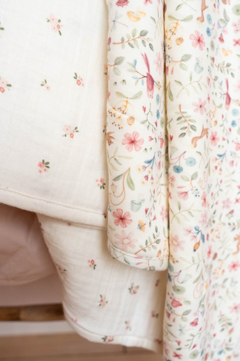 Mit dieser hübschen Wiegendecke hältst du dein Baby im Schlaf bequem und warm. Mit einem weichen Jersey-Stoff auf der einen und einem schönen Fleece-Stoff auf der anderen Seite kann die Decke auch als Schal, Tagesdecke oder Spielmatte verwendet werden. Unter dem Fairy Wonders Design wird sich dein Kleines in einen Garten voller Wunder träumen, in dem jedes Kuscheltier neue Abenteuer und Träume mit sich bringt. Hergestellt aus 100 % Bio-Baumwolle mit einem TOG-Wert von 3,7, was sie sowohl atmungsaktiv als auch isolierend macht. Für zusätzlichen Komfort kannst du die Decke einfach bei 30 Grad in der Maschine waschen.