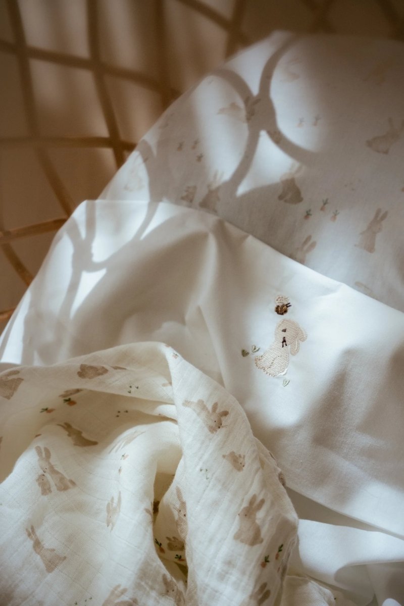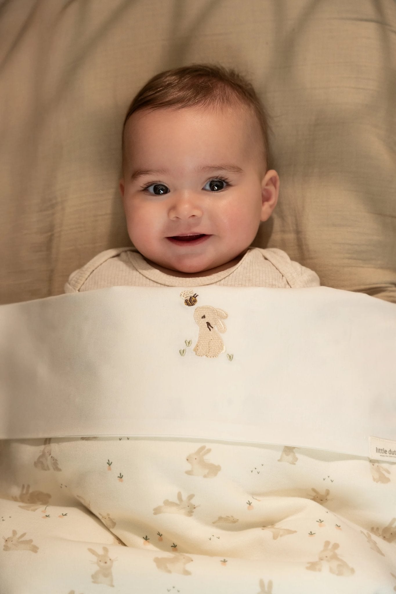 Dieses Wiegetuch Baby Bunny bestickt verfügt über eine Stickerei von konijntjes und ist aus 100% katoen.Een Schön gemachtes Bett bringt sofort mehr Atmosphäre in das Baby- oder Kinderzimmer. Das Wiegenlaken ist eine perfekte Kombination mit einer Little Dutch Wiegendecke. Babys schlafen wunderbar darunter, denn es ist aus Baumwolle und der Deckstreifen des Lakens fühlt sich schön weich an.