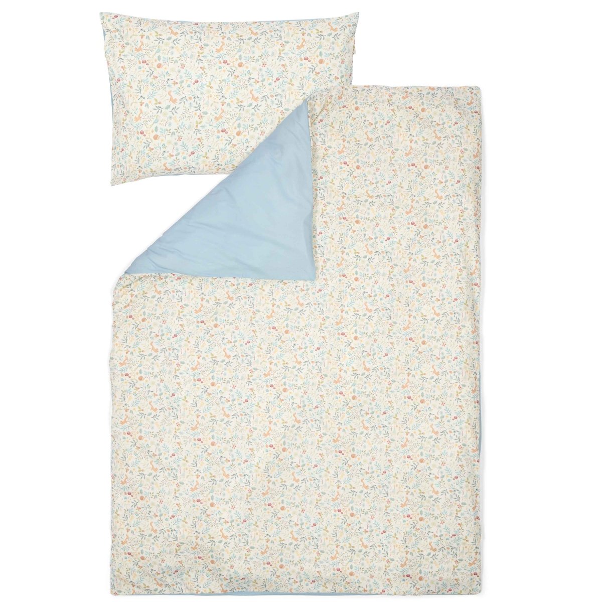 Verleihe dem Kinderzimmer einen Hauch von Design mit einem schön gemachten Bett. Mit diesem Bettbezug für ein Kleinkindbett wird sich dein Kleines ins Abenteuer träumen. Das Forest Wonders Design inspiriert zu den schönsten Träumen von einem abenteuerlichen Wald mit den niedlichsten Tieren wie Eichhörnchen, Eulen, Igeln und Vögeln. Der weiche Bettbezug besteht aus 100 % Bio-Baumwolle und ist auf der einen Seite mit dem Forest Wonders-Motiv und auf der anderen Seite in einem schlichten Denim Blue gehalten. Sowohl der Kissen- als auch der Bettbezug sind bequem, schön verarbeitet und haben eine gute Atmungsaktivität. Die Größe des Bettbezugs ist 120 x 150 cm und der Kissenbezug ist 40 x 60 cm groß.