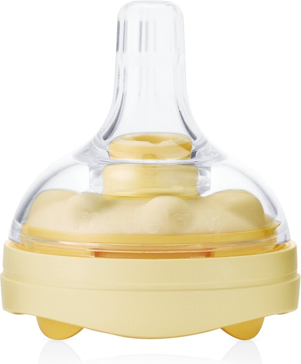 Calma von Medela hat ein patentiertes Belüftungssystem, das die Milch nur dann fließen lässt, wenn das Baby einen Sog erzeugt. Er ist für alle Altersgruppen geeignet, macht die Einstellung des Milchflusses überflüssig und passt auf Medela Sammel- und Vorratsflaschen. Calma kann gereinigt, gelagert und transportiert werden und ist ohne BPA hergestellt.