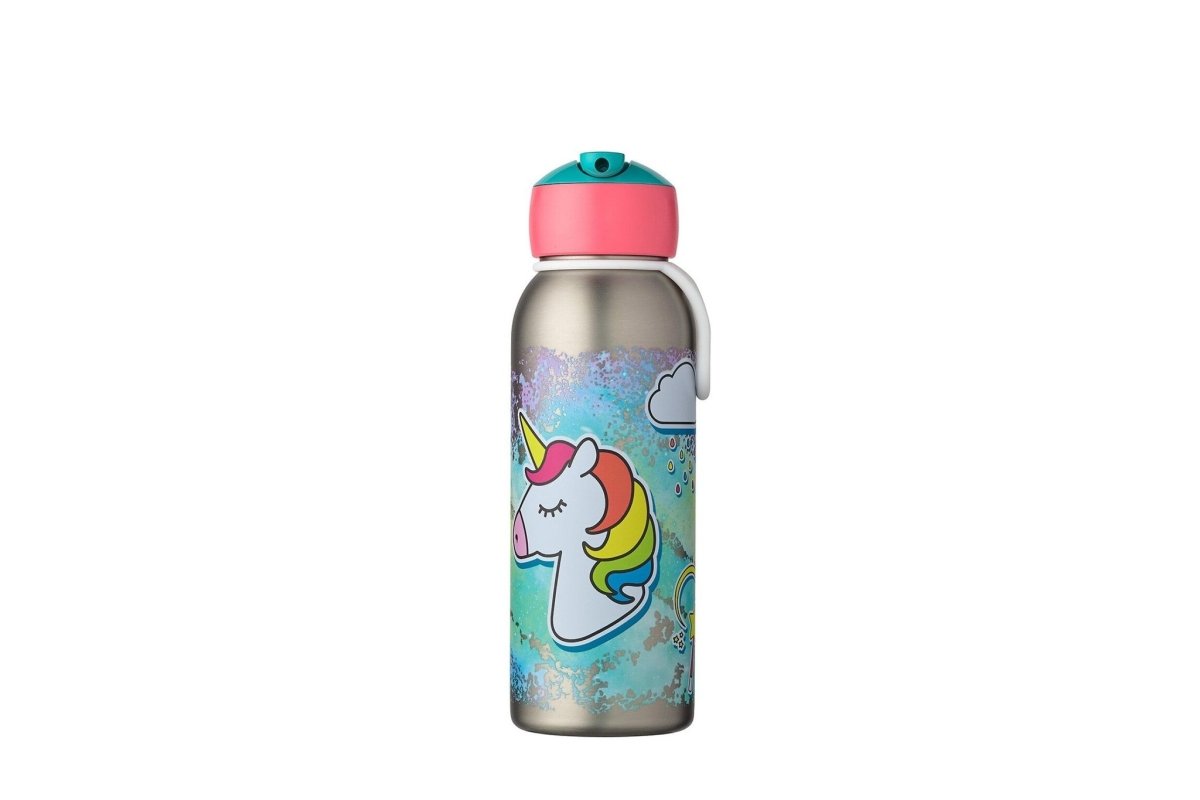Mit dieser coolen Flip-up-Vakuumflasche bleibst du auf dem Schulhof cool und kühl. Mit der Isolierflasche bleiben die Getränke deines Sohnes oder deiner Tochter den ganzen Tag lang schön kühl. Die Flasche verfügt über ein praktisches Flip-up-Trinksystem, das selbst die kleinsten Kinderhände bedienen können. Einfach den Ausgießer hochschieben und los trinken! Die Tülle ist mit einem Strohhalm verbunden und die Flasche ist garantiert auslaufsicher. Die Isolierflasche kann in der Schultasche mitgenommen werden, ist aber auch mit einer praktischen Trageschlaufe ausgestattet. Die Flip-up-Flasche ist auch für kohlensäurehaltige Getränke geeignet. Wir empfehlen, die Flasche ohne Strohhalm für kohlensäurehaltige Getränke zu verwenden. Natürlich ist die Flasche komplett BPA-frei und lässt sich leicht reinigen. Damit du möglichst lange Freude an deiner Edelstahlflasche hast, empfehlen wir dir, die Flasche mit der Hand zu waschen. Der Verschluss kann in der Spülmaschine gereinigt werden.