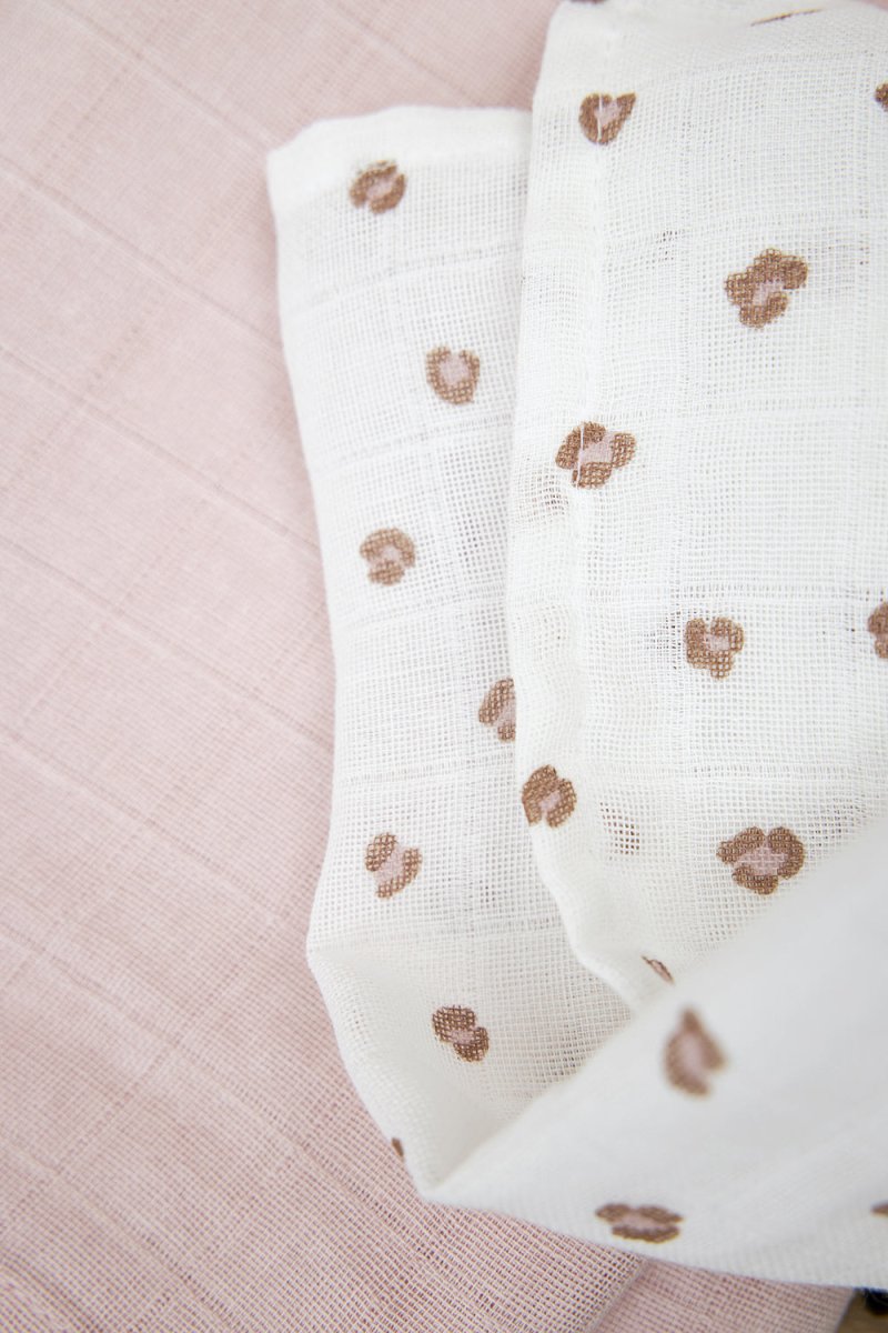 Dieses Set ist mit einem fröhlichen Mini-Panther-Print bedruckt. Diese vielseitigen Tücher in der Größe 70x70 cm sind aus 100% Baumwolle hergestellt. Die perfekte Lösung als Handtuch nach dem Bad. Die hydrophile Baumwolle trocknet schnell und nimmt Feuchtigkeit gut auf, so dass du dein Kleines auch in den kleinsten Falten trocken tupfen kannst. Der Stoff fühlt sich sehr weich an, was genau das ist, was zarte Babyhaut braucht.