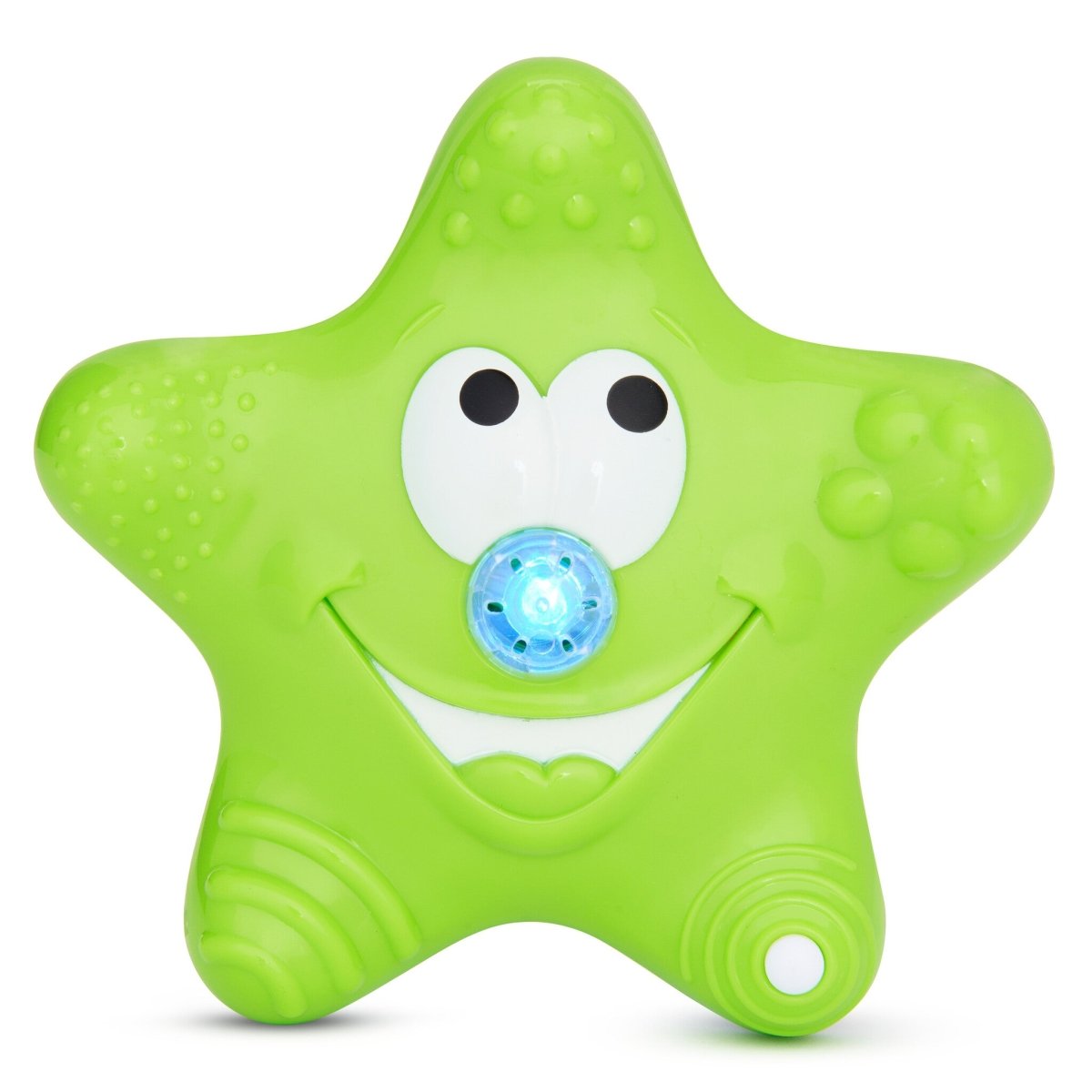 Niedliche sternförmige Fontäne, die sprüht, schwimmt, sich dreht und leuchtet. Die vielen Minidüsen machen es zu einer lustigen großen Wasserparty. Jeder Punkt des Sterns hat eine einzigartige Textur und lehrt dein Kind, visuelle Informationen zu erkennen.