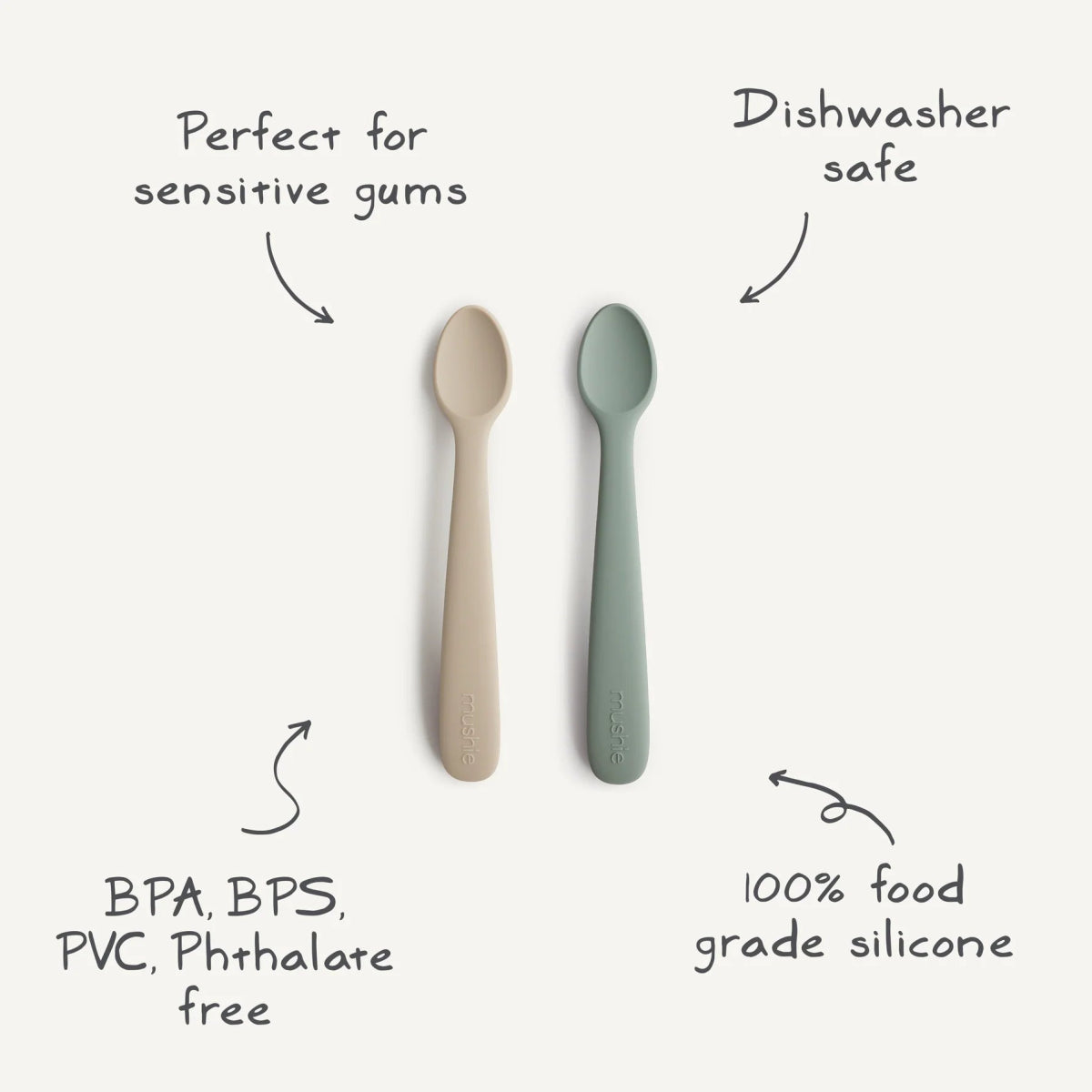 Im Lieferumfang enthalten: 1x Set mit 2 Silikonfütterungslöffeln