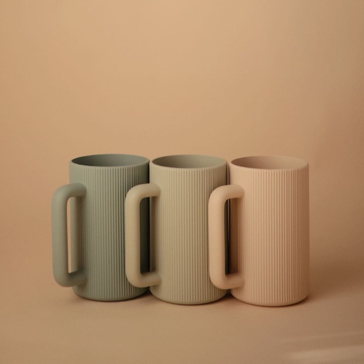 Dieser Spülbecher aus lebensmittelechtem Silikon hat eine strukturierte Oberfläche und einen praktischen Griff, der den Eltern beim Ausgießen einen sicheren Halt gibt.