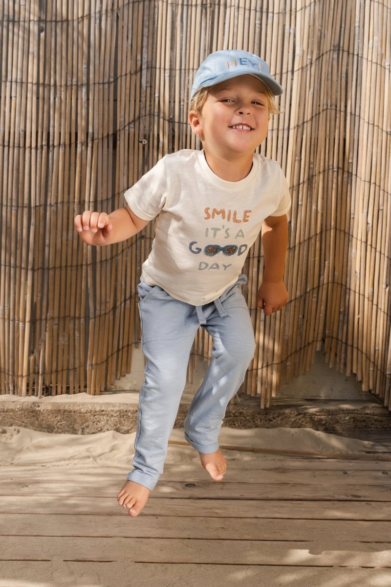 Ein cooles i-Tüpfelchen für jedes Outfit: Diese Denim-Mütze ist robust, stylisch und perfekt für sonnige Tage. Die dezente Stickerei auf der Vorderseite passt gut zum Rest der Kollektion. Dank des verstellbaren Klettverschlusses auf der Rückseite wächst die Mütze ganz einfach mit dir mit. Die Mütze besteht aus 75 % Bio-Baumwolle und 25 % Polyester und ist Öko-Tex-zertifiziert, was sie bequem und verantwortungsvoll macht.