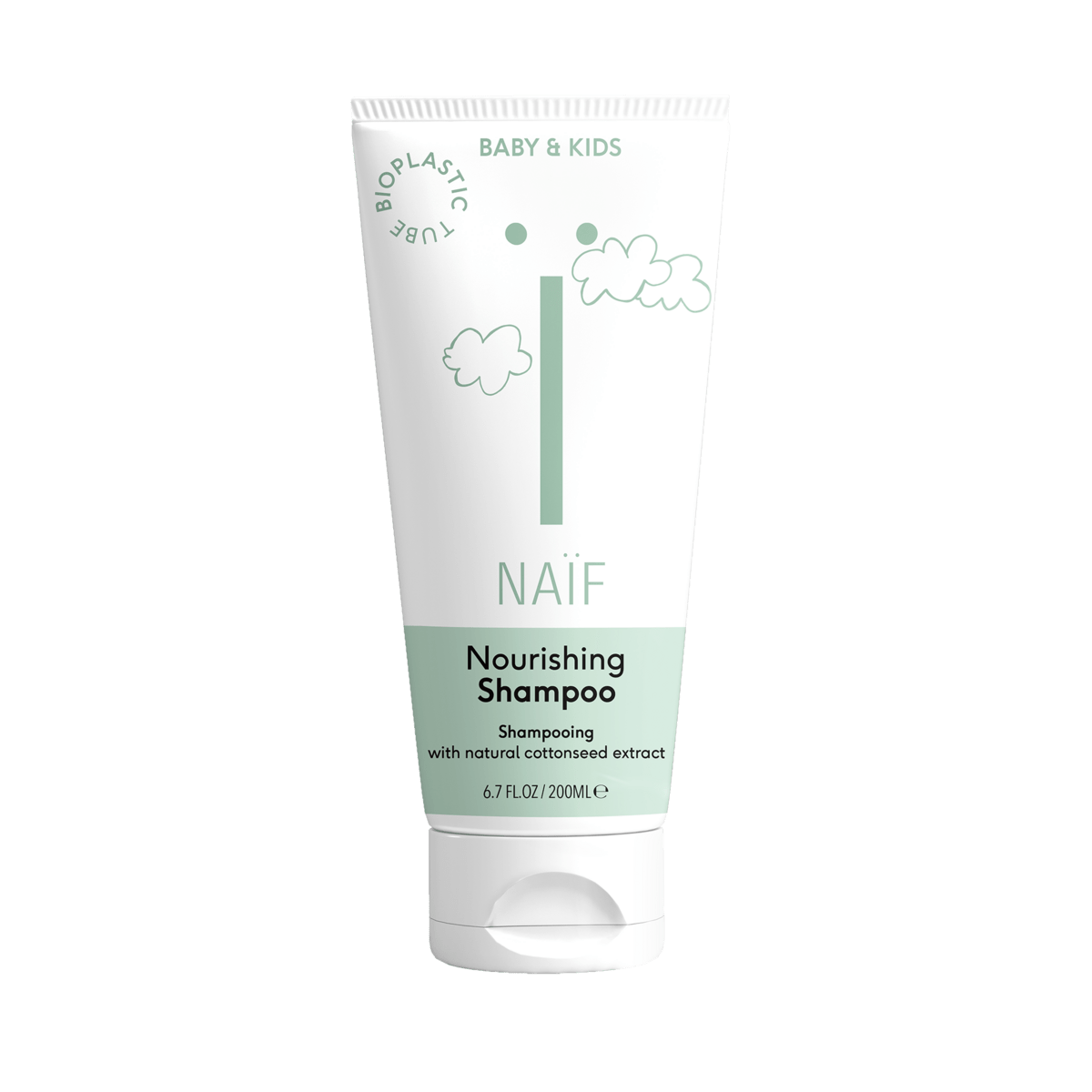Naïf Nourishing Shampoo ist für jedes Baby und Kind. Und sogar für Babys ohne Haare, denn Babyshampoo ist auch gut, um trockene Kopfhaut zu verhindern. Das Shampoo ist vollgepackt mit natürlichen Inhaltsstoffen wie Baumwollsamenöl, die das Haar und die Kopfhaut sanft reinigen und pflegen. Das Ergebnis: sauberes, weiches und gut gekämmtes Haar. Auch schön: Das Babyshampoo brennt nicht in den Augen. Außerdem riecht es toll!