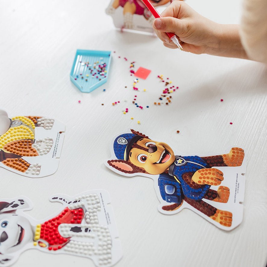 Mache die schönsten Kreationen mit diesen Paw Patrol Diamant-Malkarten! Erwecke deine Lieblingscharaktere wie Chase, Marshall und Skye mit glitzernden Strasssteinen zum Leben. Das Set reicht für 4 Karten, die du mit den beiliegenden Ständern aufrecht hinstellen und an den schönsten Platz in deinem Zimmer stellen kannst! Erwecke deine eigene Paw Patrol Welt zum Leben und genieße es, nach deinen Lieblingswelpen aus der beliebten Serie und dem Film