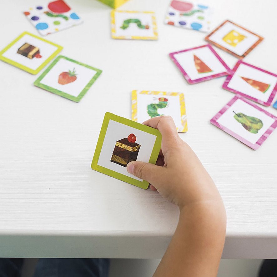 Wo, oh, wo ist eigentlich der andere knackige Apfel? Oder dieser leckere Cupcake? Um dieses Memo-Spiel zu gewinnen, musst du genau aufpassen und so viele Bilder wie möglich finden. Alle Bilder der Leckereien stammen aus Eric Carles Buch "Die Raupe Nimmersatt", was dieses Merkspiel besonders lustig macht. Das Spiel enthält 40 Karten aus sehr stabilem Karton. Für kleinere Kinder ist es ratsam, zunächst mit einer begrenzten Anzahl von Karten zu beginnen.