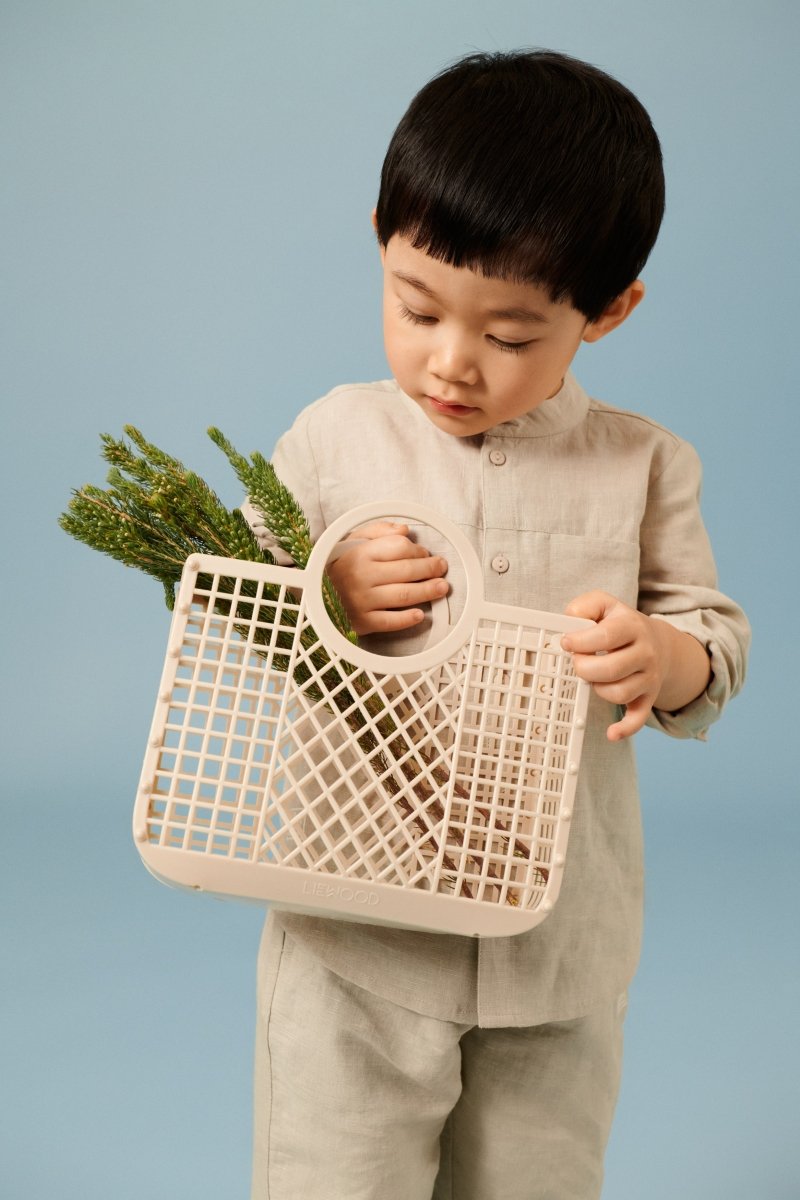 Diese mittelgroße Korbtasche ist ideal für zu Hause und auf Reisen. Dank des flexiblen Materials und des leichten Designs lässt sich die Tasche leicht zusammenbauen und wieder zusammensetzen. Perfekt für die Aufbewahrung von Spielzeug, Büchern oder kleinen Schätzen und geeignet, um sie mit auf Abenteuer zu nehmen.