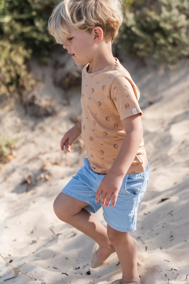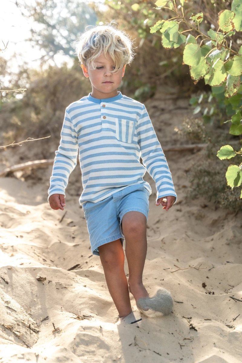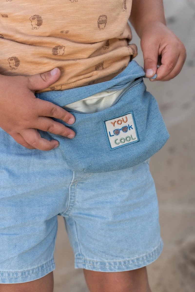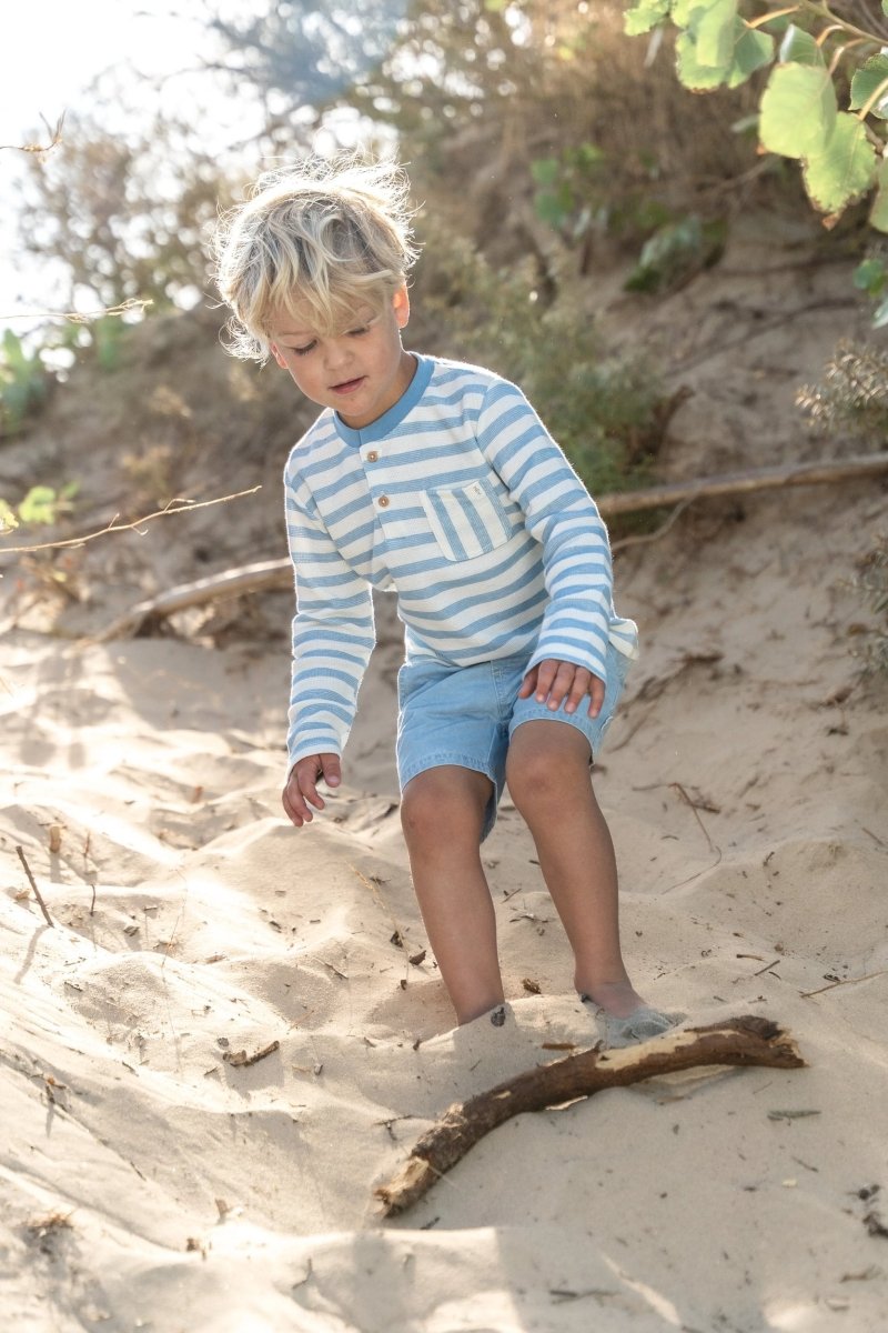 Strapazierfähig und weich zugleich: Diese Shorts aus leichtem Denim sind ideal für bewegungsreiche Sommertage. Der elastische Bund mit Kordelzug sorgt für eine bequeme Passform, die auch bei Erkundungsabenteuern an Ort und Stelle bleibt. Die Aufschläge an den Beinen sorgen für einen verspielten Touch, während die Seitentaschen praktisch für gefundene Schätze sind. Die Hose besteht aus 75 % Bio-Baumwolle und 25 % Polyester, ist Öko-Tex-zertifiziert, fühlt sich weich an und ist langlebig.