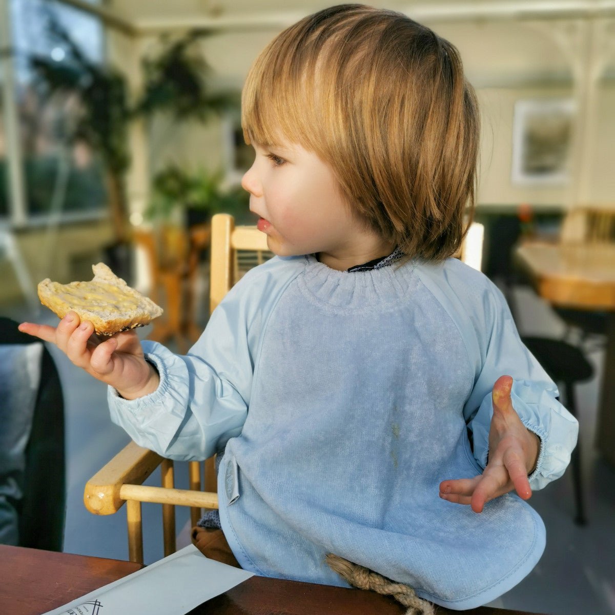 Mit diesem Dusty Blue Messy Eater Lätzchen von Silly Billyz kann dein Kind unbeschwert essen und spielen, während seine Kleidung sauber und geschützt bleibt!