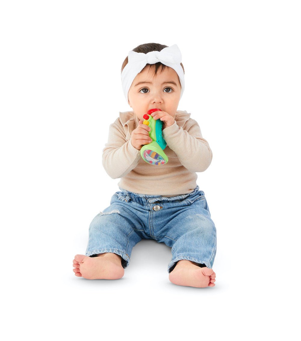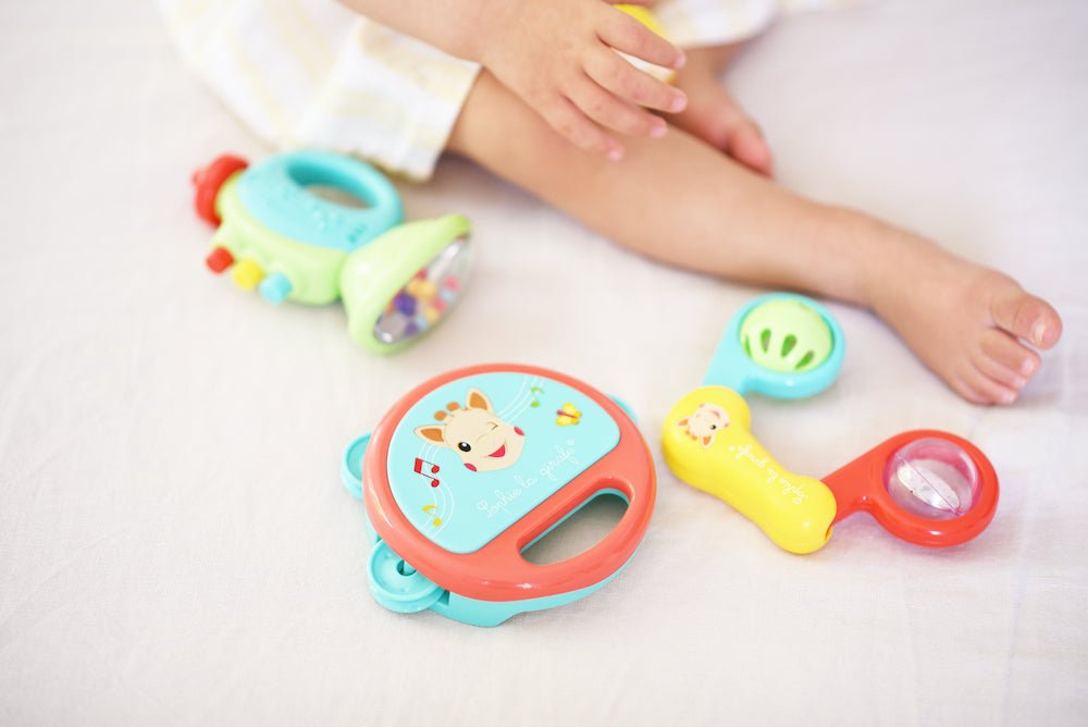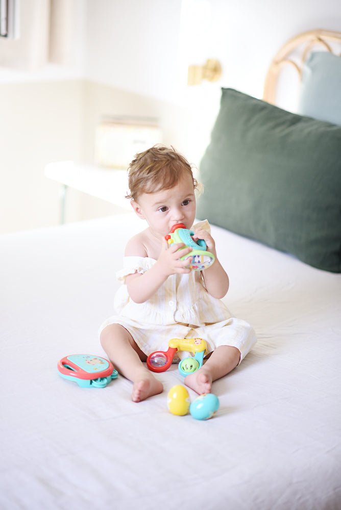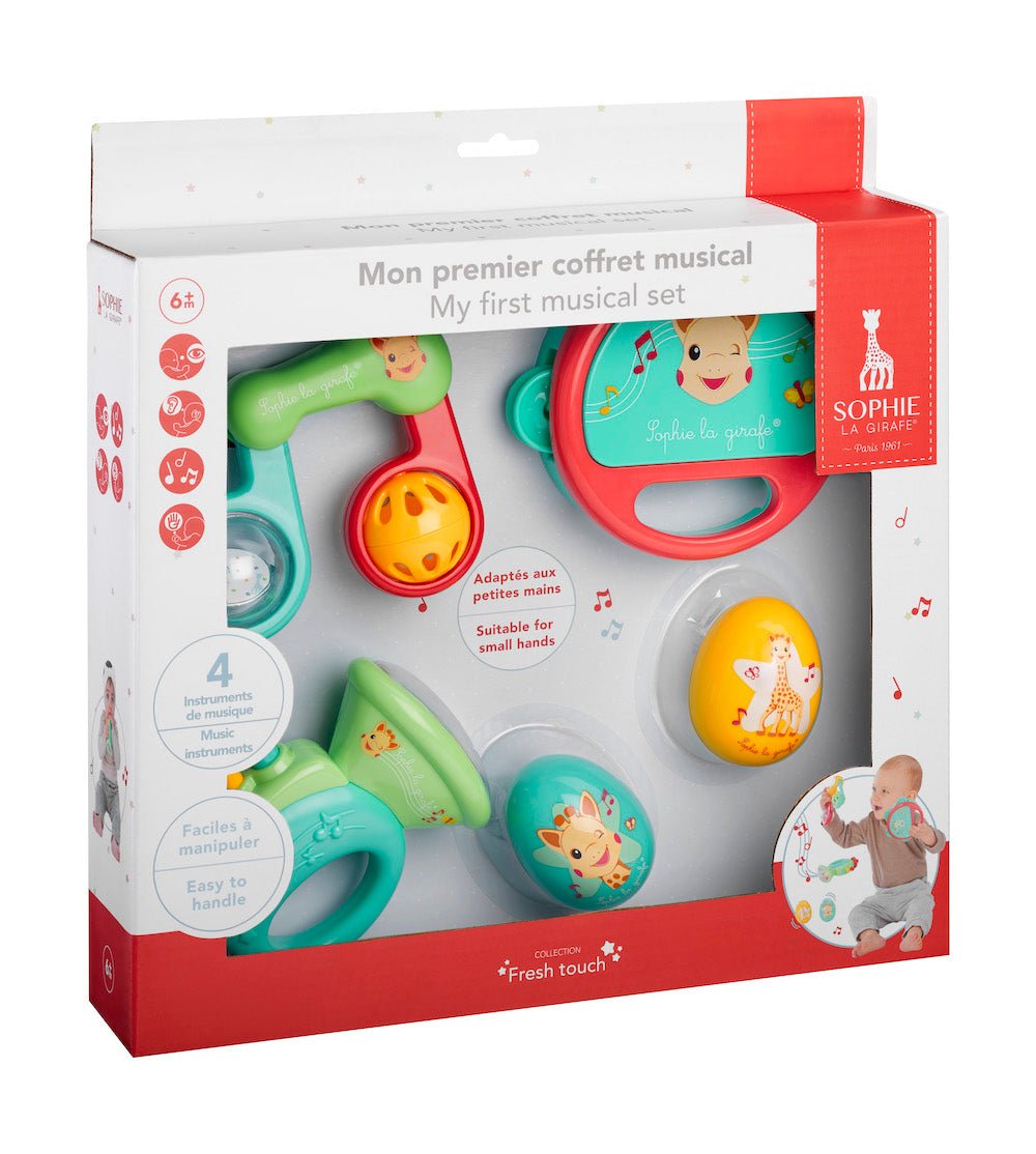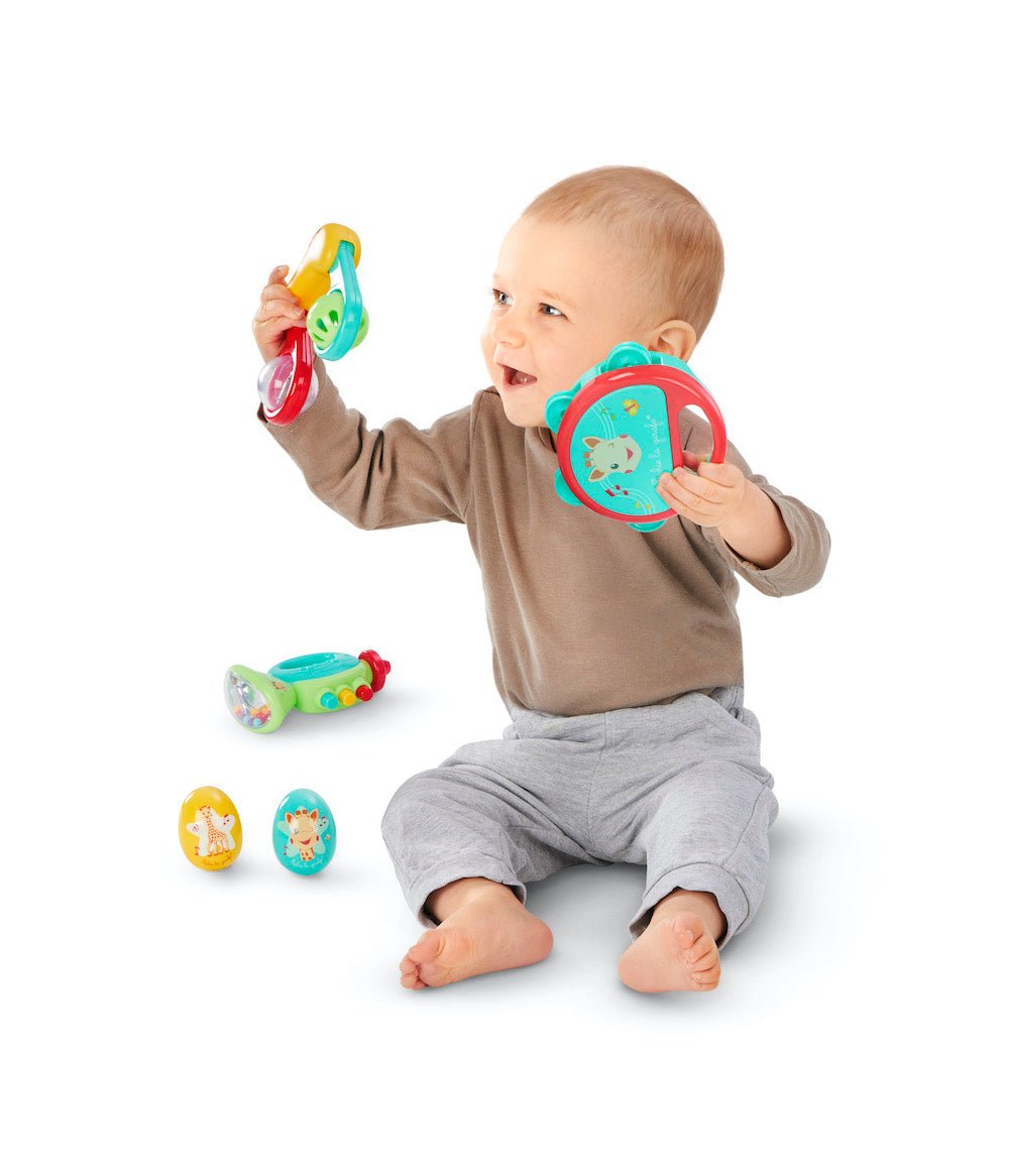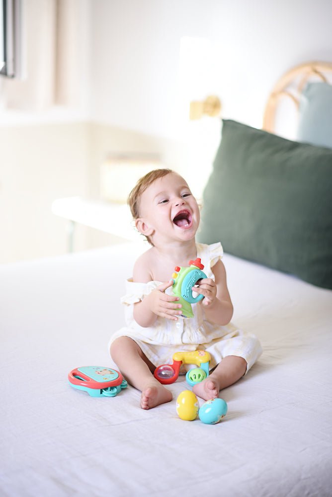 Jedes Instrument regt das Gehör, das Sehen und den Tastsinn an, für Momente voller Sinneseindrücke und Spaß. Ein ideales Geschenk, um dein Baby in die Magie der Musik einzuführen.