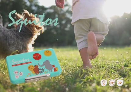 Mit diesen fröhlichen Citronella-Aufklebern von Squitos macht das Spielen im Freien und das Schlafen im Sommer besonders viel Spaß! Speziell entwickelt für Kinder und sogar Kleinkinder ab 0 Jahren. Die natürliche Kombination aus Citronella und Eukalyptus sorgt für einen sanften, frischen Duft und hilft, unerwünschte Insekten in Schach zu halten - ohne DEET und ohne Hautkontakt.
