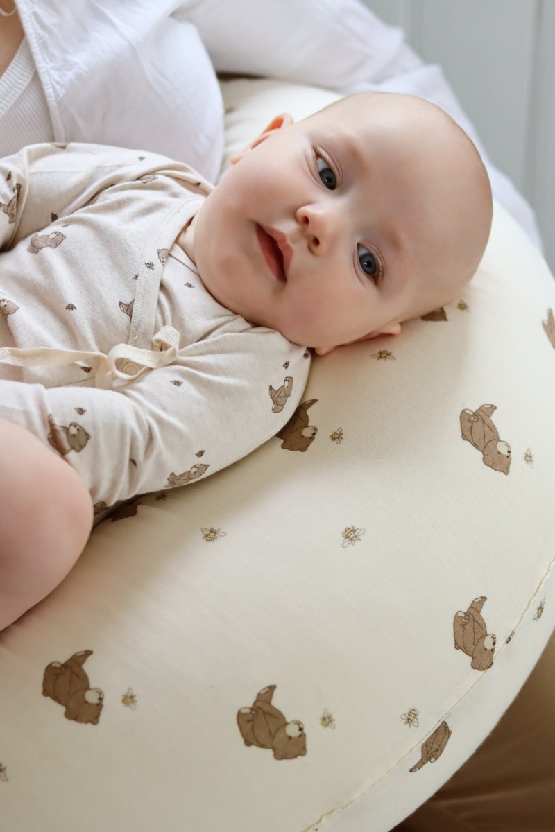 Dieses wunderschöne, innovative und multifunktionale Stillkissen wurde für werdende und frischgebackene Eltern entwickelt, um ihnen den besten Start in ein ganz neues und tolles Kapitel zu ermöglichen. Das Stillkissen erfüllt die wichtigsten Bedürfnisse beim Stillen und Füttern von Babys mit der Flasche. Mit diesem bahnbrechenden Stillkissen ist es kein Problem, Zwillinge zu stillen, denn es ist lang genug, um zwei Babys zu füttern. Praktisch und tragbar: Das Kissen kann einfach um den Körper gebunden werden. Das macht es besonders bequem, wenn man aufsteht und das Baby z. B. zum Stillen aus der Wiege nimmt. An jedem Ende des Stillkissens ist ein weiches Blatt befestigt, so dass das Baby immer ein tröstendes Tuch in Reichweite hat. Außerdem ist es formbar und bietet Mutter und Baby eine bequeme Unterstützung beim Stillen, als Schlafkissen oder als Lendenwirbelstütze für die schwangere Mutter. Gleichzeitig dient es als perfekte Stütze, wenn das Baby auf dem Bauch liegen muss, als Stuhl oder Nackenstütze, wenn das Kind wächst.
