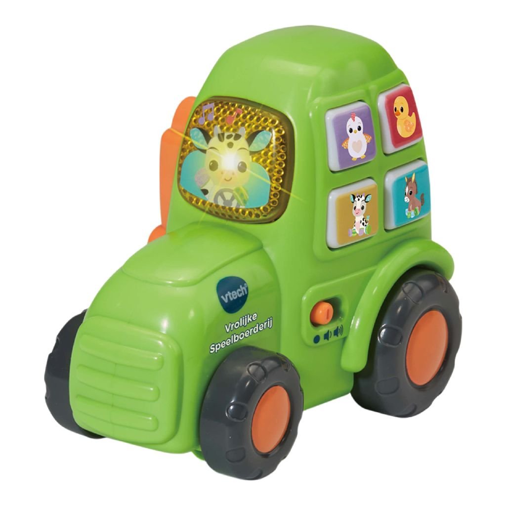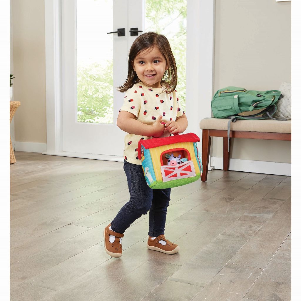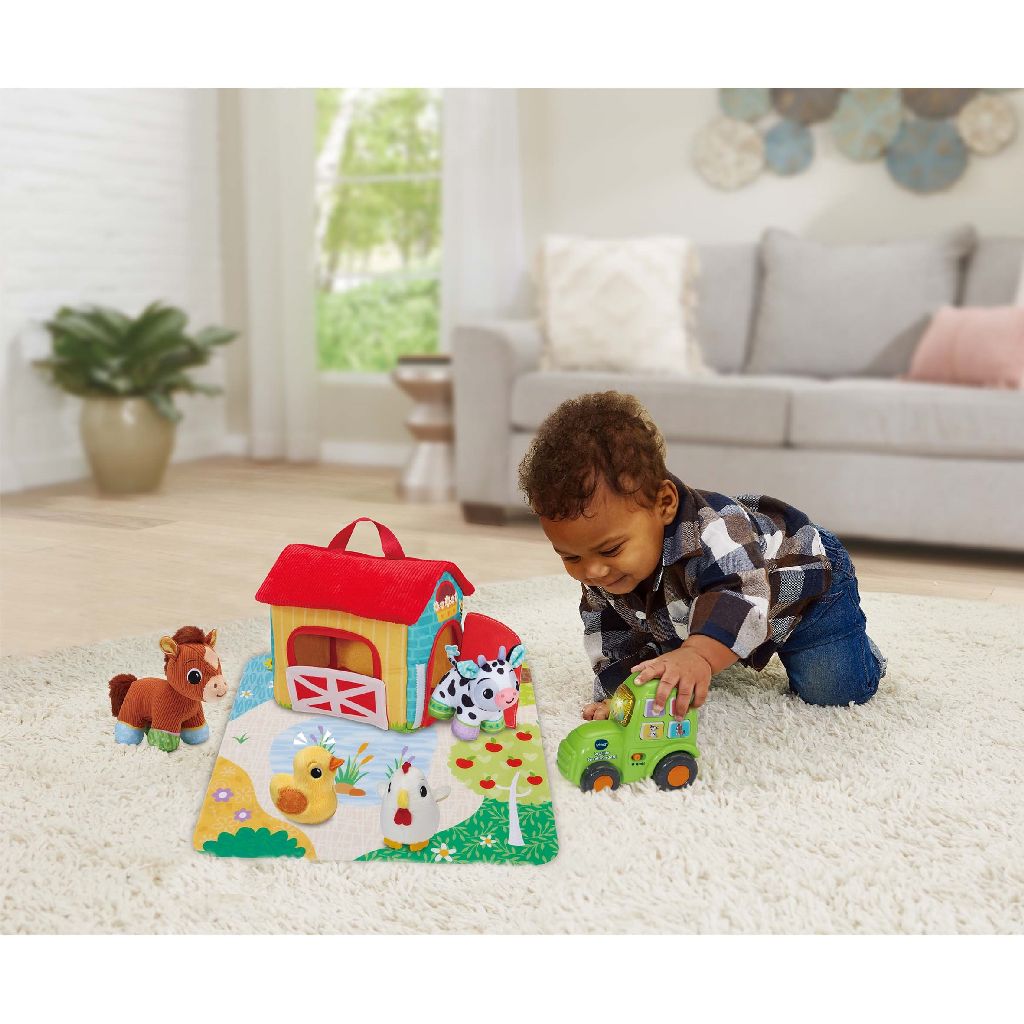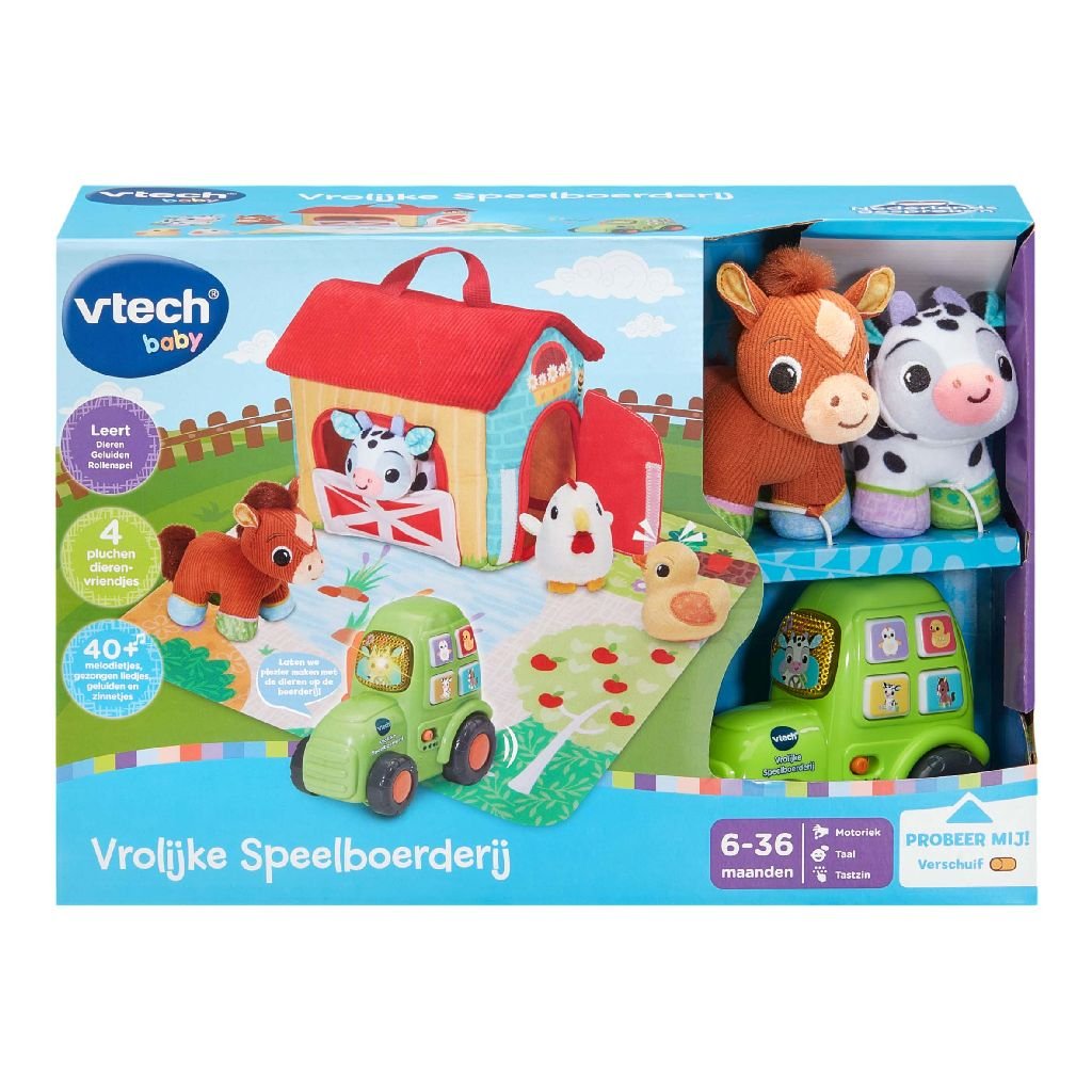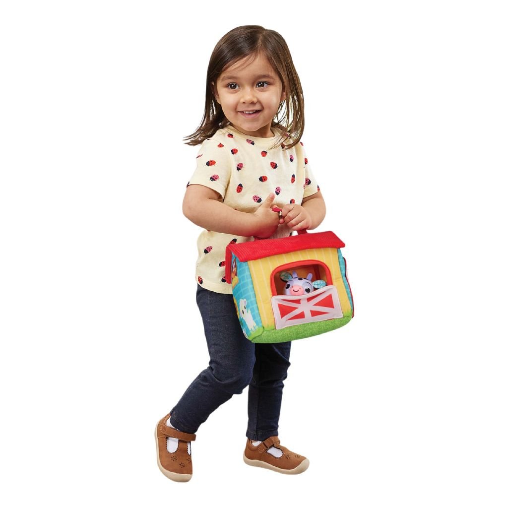 Die Bauernhoftiere machen mich glücklich! Knuddel die Plüschtiere mit verschiedenen Stofftexturen und verstaue sie in der Farm, um sie überallhin mitzunehmen. Bewege den Traktor, um lustige Geräusche zu aktivieren und drücke die Knöpfe, um die Tiere und ihre Geräusche kennenzulernen sowie Lieder und Melodien zu hören. Komm und spiel auf der Farm!