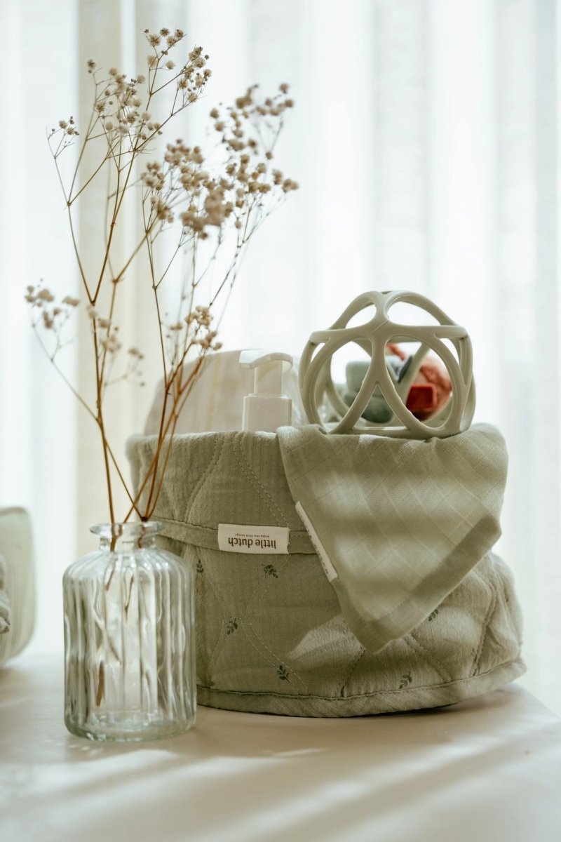 Kombiniere den Korb mit anderen Produkten aus der gleichen Linie für einen einheitlichen und organisierten Look im Babyzimmer.